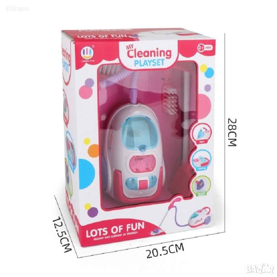 Тип продукт: Детски играчки; Комплект от 6 детски играчки за почистване, изработени от висококачествен ABS материал, който осигурява безопасност и дълготрайност. В комплекта ще намерите прахосмукачка, ръчна кутия за прах, метла, чаша за прах, четка и пакет с дунапренени топки. Комплектът е идеален за развиване на моторни умения и въображение. Размерите на опаковката са 20 x 12 x 12.5 см, а за функционирането на прахосмукачката са необходими 2 AA батерии (не са включени). Подходящ за малки помощници в домакинството!