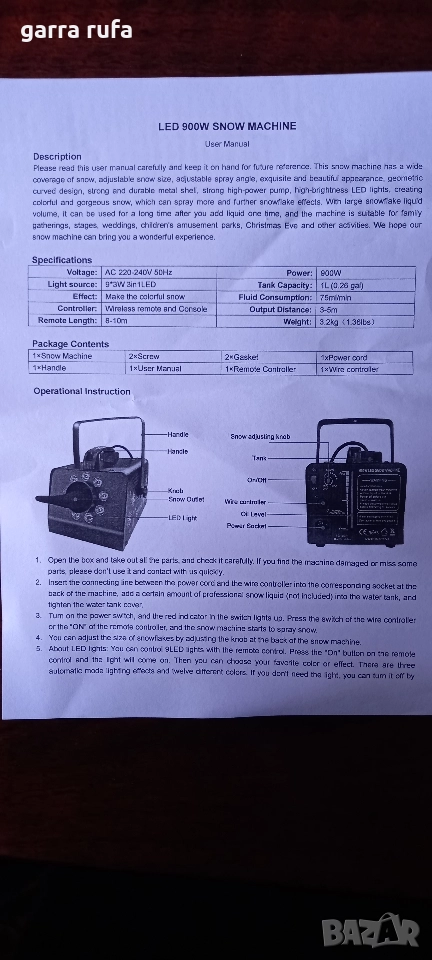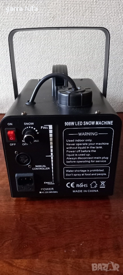 Продавам чисто нова мощна 900 вата машина за правене на изкуствен сняг която има широко покритие на сняг (3-5метра),регулируем размер на снежинките, регулируем ъгъл на пръскане,изящен и красив външен вид,мощна помпа и LED светлини с висока яркост,създаващи цветен и разкошен сняг,който може да се регулира на по малки и по големи снежинки.Подходяща е за семейни събирания,сцени, детски и увеселителни паркове,Бъдни вечер и други.