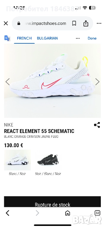 Продавам дамски маратонки Nike React element 55.Маратонките са използвани.Номер 38,5.