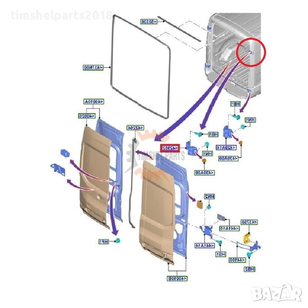 Задна панта врата "дясна горна 270 градуса" за Ford Transit след 2014 год.