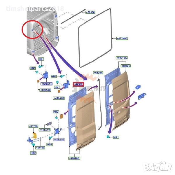 Задна панта врата "лява горна 270 градуса" за Ford Transit след 2014 год.
