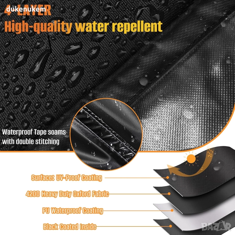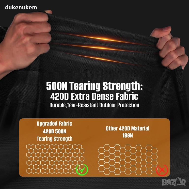 Изработено от усилен 420D оксфорд плат – устойчив на разкъсване, избледняване и екстремни атмосферни условия.