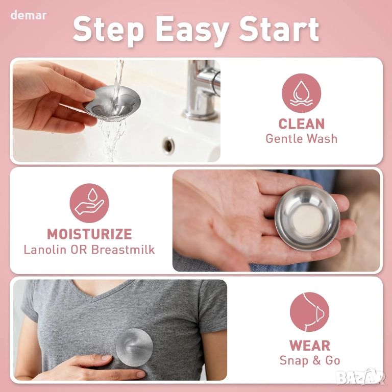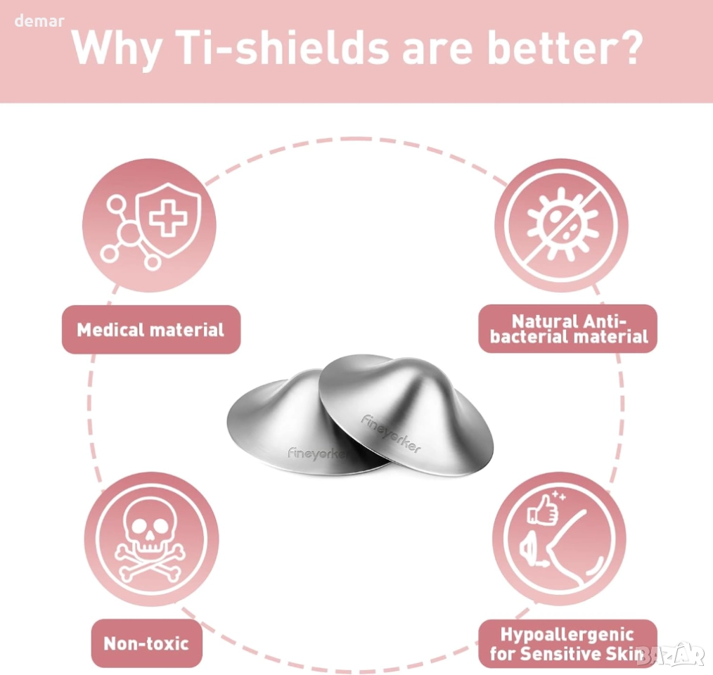 Тези протектори за зърна за кърмене осигуряват нежна защита, за да намалят триенето и дискомфорта, като се отличават с контурирано, гъвкаво прилягане, което се приспособява естествено за безболезнена употреба. Изработени от хипоалергенен чист титан, те са безопасни за чувствителна кожа, не са корозивни и подходящи за продължителен контакт без риск от алергични реакции. Тяхната издръжлива, многократно използваема конструкция запазва формата си с течение на времето, предлагайки дълготрайна стойност. Гладката, непореста повърхност предотвратява натрупването на бактерии и прави почистването бързо и лесно с топла вода и мек сапун.