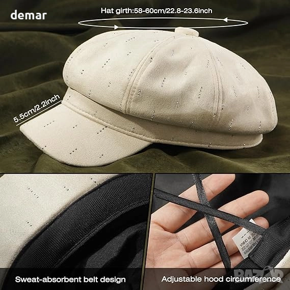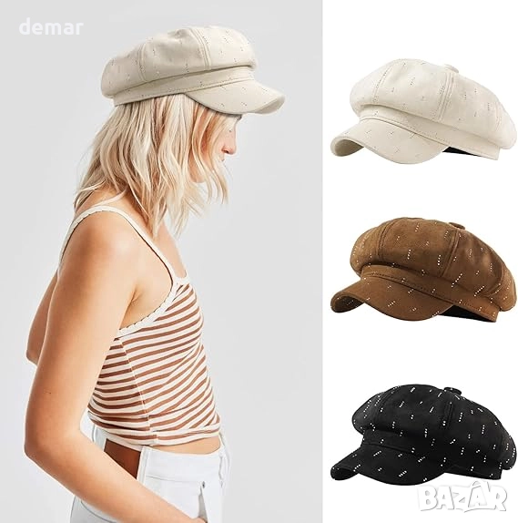 Тази дамска шапка с форма на купол е изработена от лек, дишащ полиестер и е украсена с диамантени орнаменти за стилен завършек. Предлага се в универсален размер с регулируема дължина 58–60 см и 8-панелен дизайн с вътрешен шнур. Шапката съчетава класически шевове със засенчваща периферия, което я прави подходяща за пролет, есен и зима, като същевременно осигурява стил и топлина. Универсалният ѝ вид се съчетава лесно с ежедневни или официални тоалети, от ветровки и кожени якета до пуловери. Тя служи и като модерен аксесоар за ежедневно носене и е подходящ подарък за поводи като рождени дни, Ден на майката, Свети Валентин и други специални тържества.
