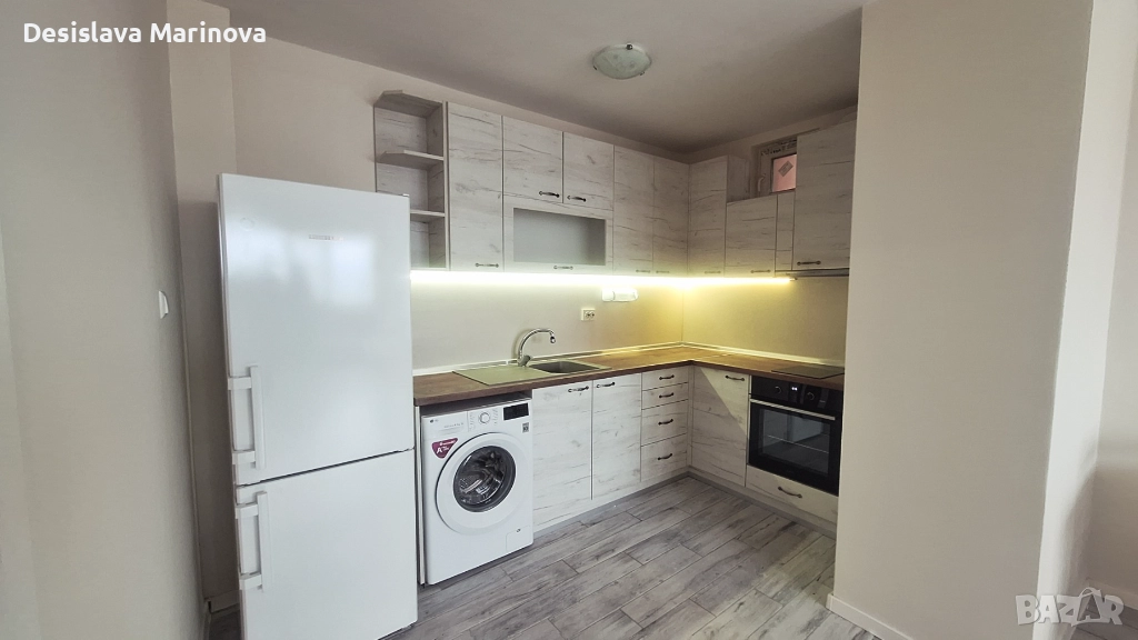 снимките. В кухненският бокс има вградена фурна с котлони, аспиратор, пералня,