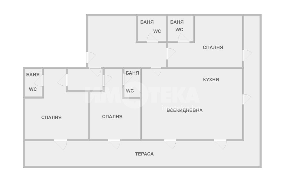 тераса около цялото жилище с излаз от всички стаи.
