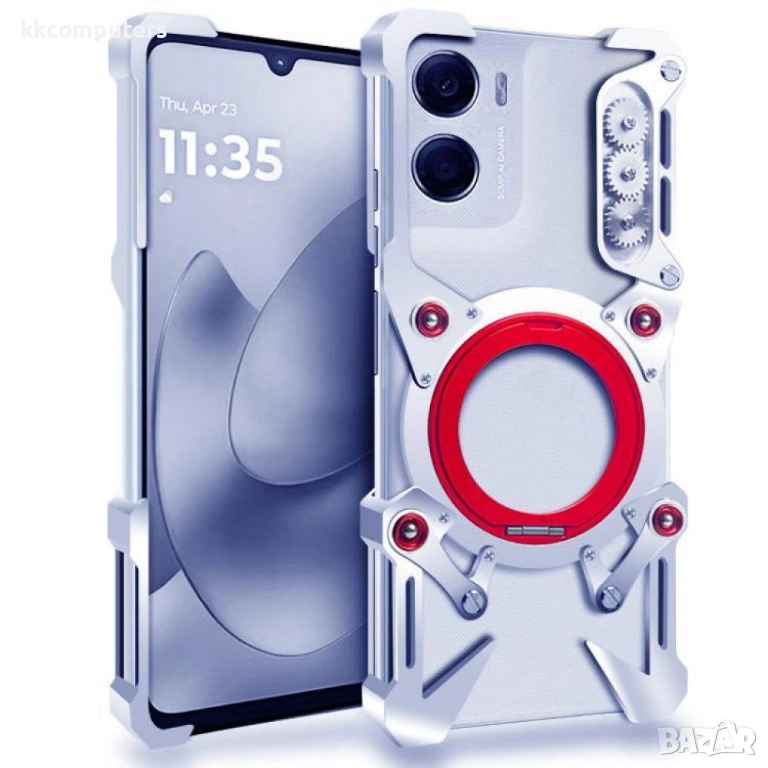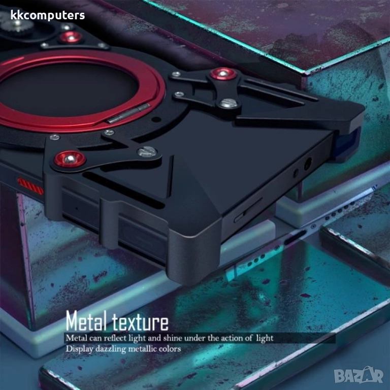 Уникален дизайн със система за охлаждане: За разлика от обикновените калъфи, този е изработен от алуминиева сплав с голям вентилационен отвор (отдушник) на гърба. Този дизайн не само придава индустриален, готик и стимпънк стил, но и функционира като ефективна пасивна система за охлаждане. Той подпомага топлоразсейването и предотвратява прегряване на телефона при продължителна употреба или зареждане.