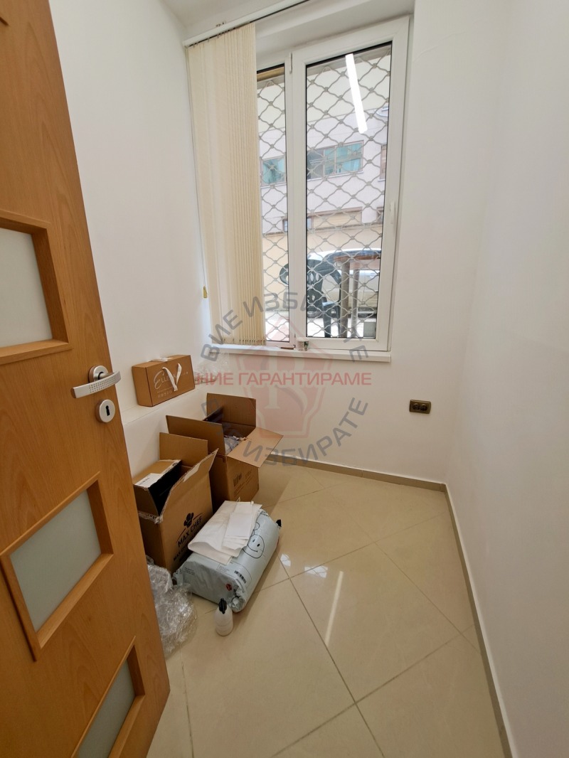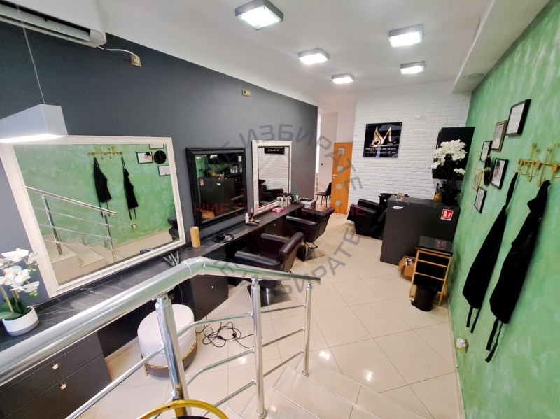 РАЗПРЕДЕЛЕНИЕ на имота: разположен на партерен етаж. Състои се от просторно помещение, коридор - приемна, три, по-малки помещения и санитарен възел. Имотът е в отлично състояние, завършен до ключ, има подобрения и е готов за ползване. Статут на магазин. Оборудван с климатици, има вентилационна система и СОД. Обезопасен с външни, метални решетки. Има излаз към вътрешен двор. Ползван е като салон за красота. Предлага се без обзавеждането.