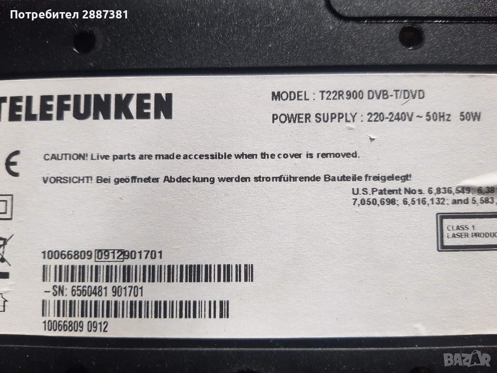 Telefunken T22R900 DVB-T DVD на части 17MB45-3v1 17IPS17-2, снимка 1 - Части и Платки - 52723764 Telefunken T22R900 DVB-T DVD на части 17MB45-3v1 17IPS17-2, снимка 2 - Части и Платки - 52723764 Telefunken T22R900 DVB-T DVD на части 17MB45-3v1 17IPS17-2, снимка 3 - Части и Платки - 52723764 Telefunken T22R900 DVB-T DVD на части 17MB45-3v1 17IPS17-2, снимка 4 - Части и Платки - 52723764 Telefunken T22R900 DVB-T DVD на части 17MB45-3v1 17IPS17-2, снимка 5 - Части и Платки - 52723764 Telefunken T22R900 DVB-T DVD на части 17MB45-3v1 17IPS17-2, снимка 6 - Части и Платки - 52723764 Telefunken T22R900 DVB-T DVD на части 17MB45-3v1 17IPS17-2, снимка 7 - Части и Платки - 52723764 Telefunken T22R900 DVB-T DVD на части 17MB45-3v1 17IPS17-2, снимка 8 - Части и Платки - 52723764 1/8