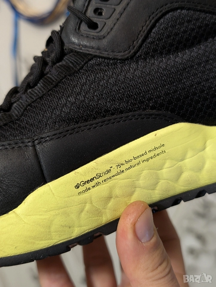 - комфортна междинна подметка, направена по технология Greenstride. Тя съдържа 75% био захарна тръстика и естествен каучук от дървета. Тези материали са преобразувани в шокоабсорбираща, мека пяна, която максимално ще намали напрежението върху стъпалото.
