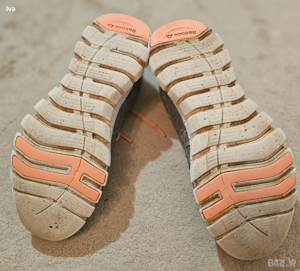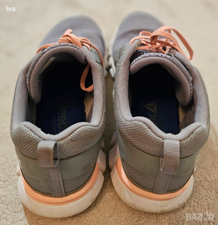Дамски маратонки Reebok, размер 41, стелка 27 см, в сив и розов цвят. Супер меки и удобни! Подходящи за ежедневието и за дълго вървене. Много здрави и качествени, леки; издържат на големи натоварвания. Няма скъсано, разлепено, нормални следи от носене.