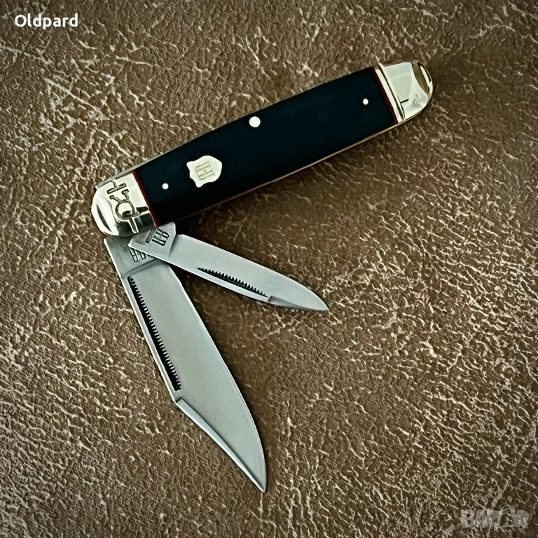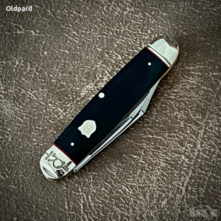 Класически сгъваем джобен нож Cattleman Black Micarta. Дължина в сгънато състояние - 11 см. Две остриета от неръждаема стомана с огледално полиране. Черна микарта и никелирана сребърна дръжка. Предлага се в подаръчна кутия. Този удобен, класически дизайн е намигване към историята на Първата световна война. Този функционален, висококачествен и издръжлив нож - подарък за всеки мъж.