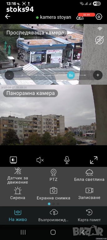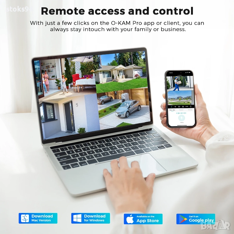 Приложение на БЪЛГАРСКИ ЕЗИК: Използва O-Kam Pro (iOS/Android) за лесен контрол, двупосочно аудио и отдалечен достъп.