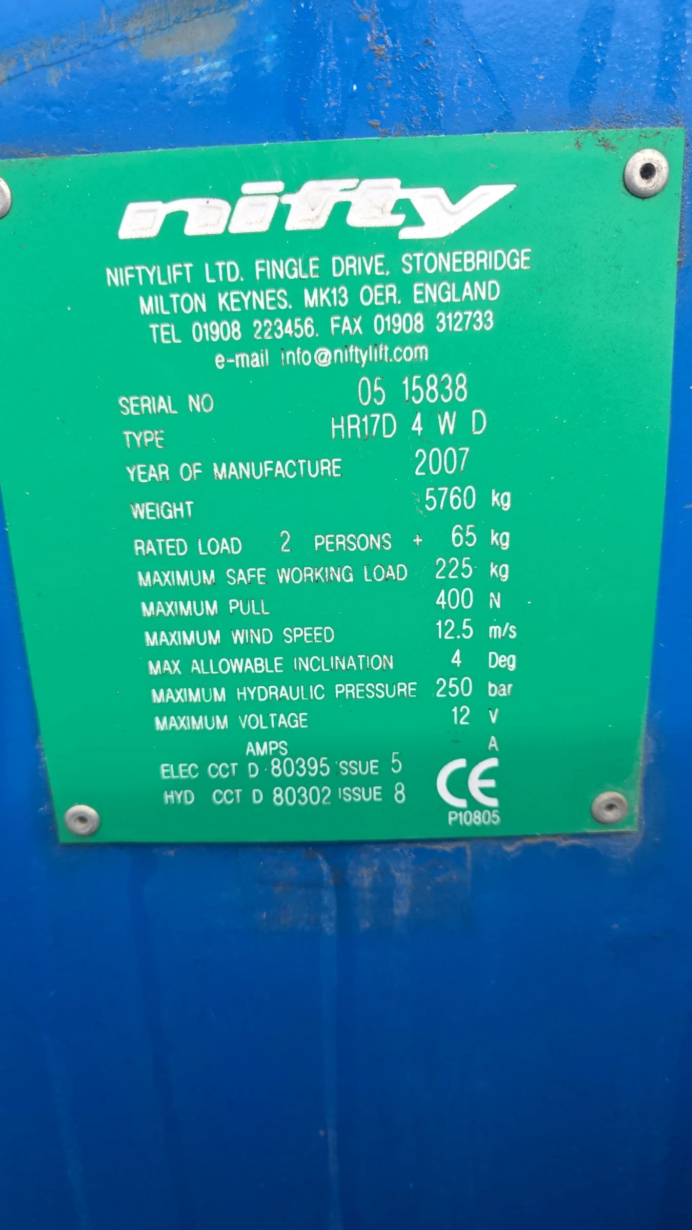 Автовишка Друга марка NIFTY HR17 4WD 4X4 17 МЕТРА → Обява 52724888