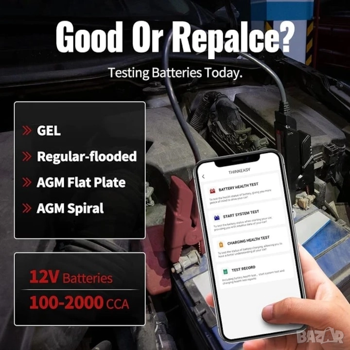 Тестера за акумулатор Thinkeasy battery test clip може да тества повечето предлагани на пазара акумулатори : Обслужваеми, AGM flat plate, AGM Spiral, EFB, както и акумулатори с гел.