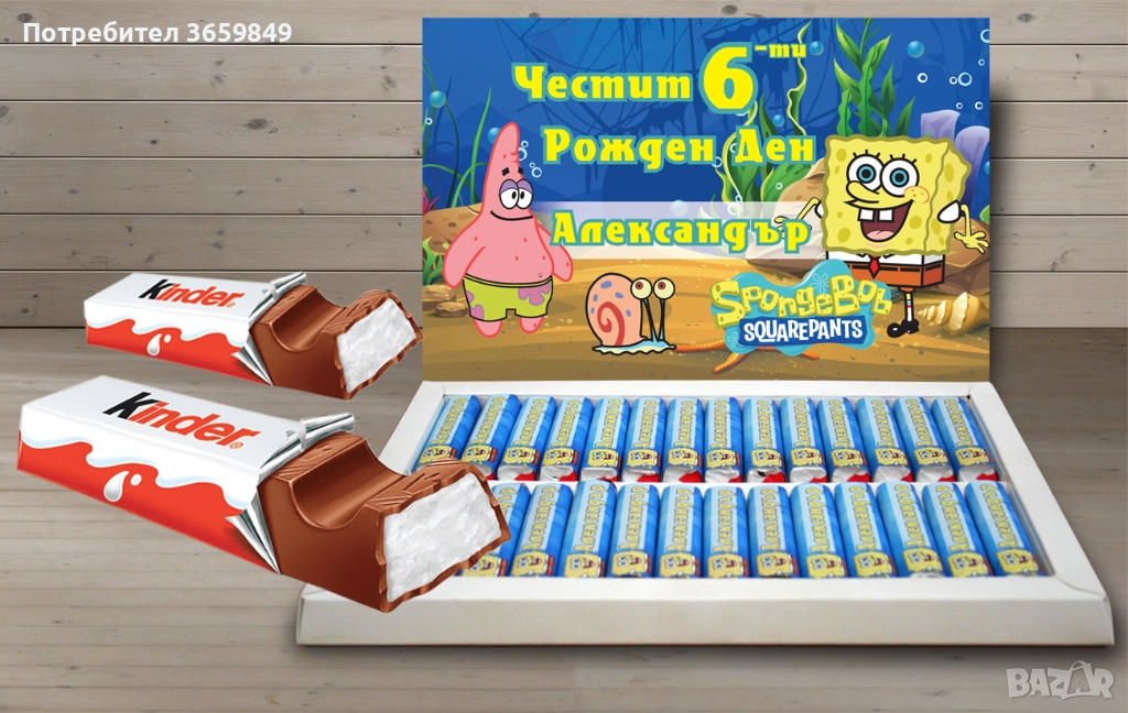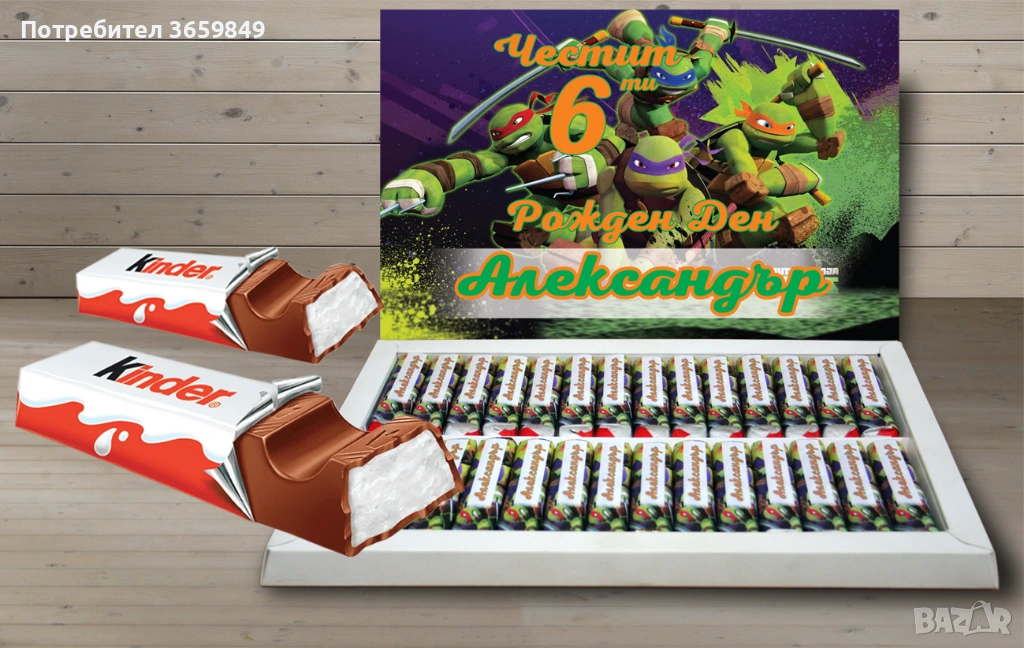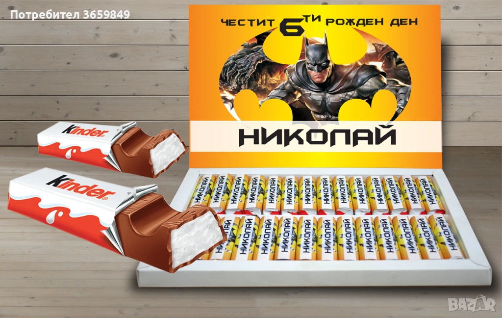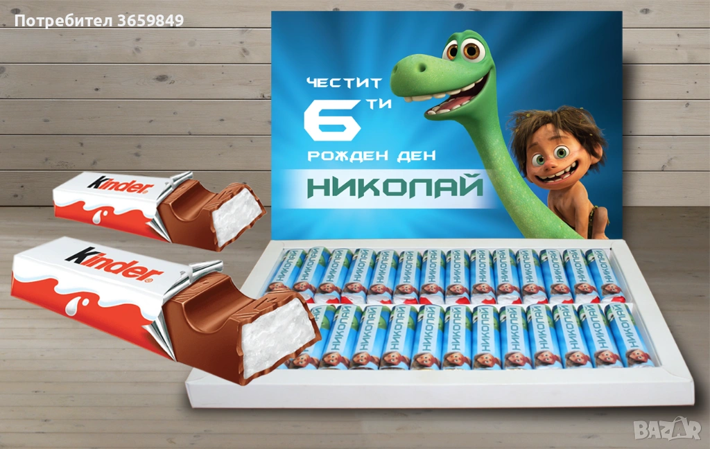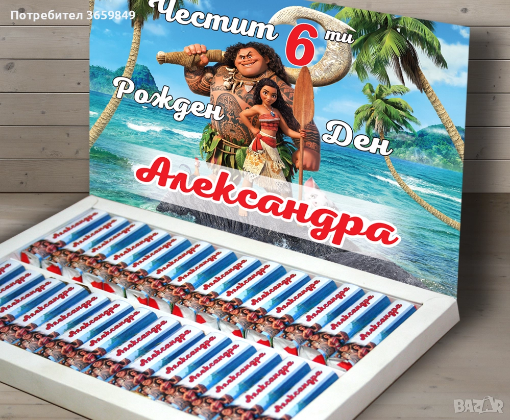 Двустранен печат на капака на кутията с името на детето и датата на празника