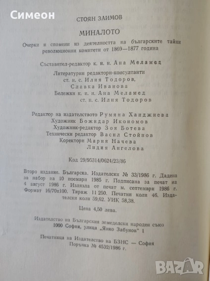 Миналото Очерки и спомени из деятелността на българските тайни революционни комитети от 1896-1877 г.