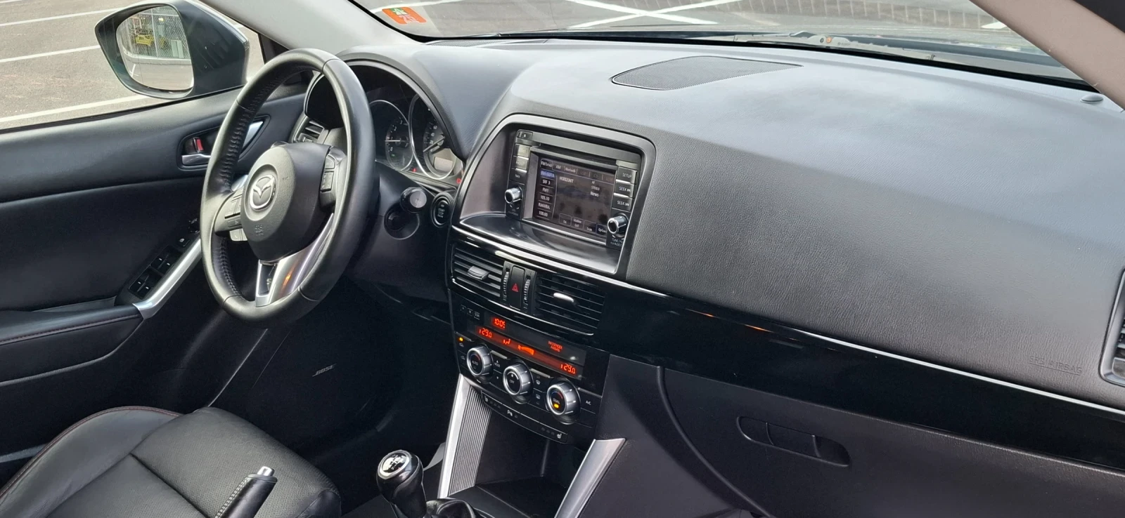 Mazda CX-5 2. 0 бензин AWD 2014 г. FULL BOSE Камера Асистенти Продавам отлично поддържана Mazda CX-5 2. 0 бензин (160 к. с. ), 4x4 AWD, ръчни скорости, реални километри и напълно изряден автомобил. Оборудване: Асистент за поддържане на лентата (Lane Assist) Система за следене на мъртва точка (BSM) Камера за заден ход Bose премиум аудио FULL оборудване Климатроник, мултимедия, парктроник Алуминиеви джанти, хубави гуми Отлично работеща 4х4 система Състояние: Автомобилът е технически перфектен, без тропове или шумове. Интериорът е много запазен, без скъсвания и забележки. Поддържан редовно готов за път, без нужда от допълнителни вложения. Икономичен, надежден и изключително удобен SUV! Идеален както за градско, така и за дълъг път. Възможен коментар на цената на място