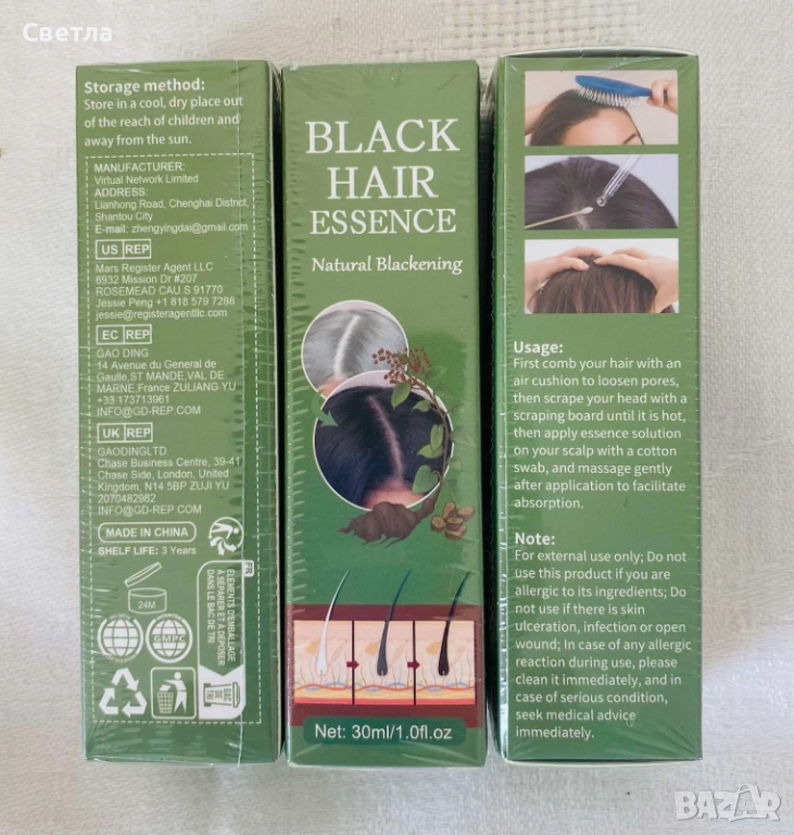 Серум за почерняване на бяла коса.  3 опаковки за 20лв. Подхранва скалпа, Против косопад