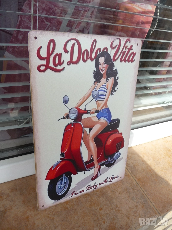 Метална ламаринена табела - La Dolce Vita. From Italiy with love.