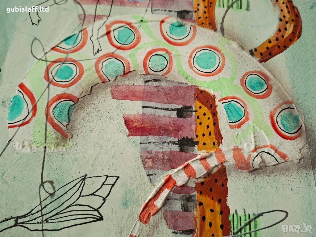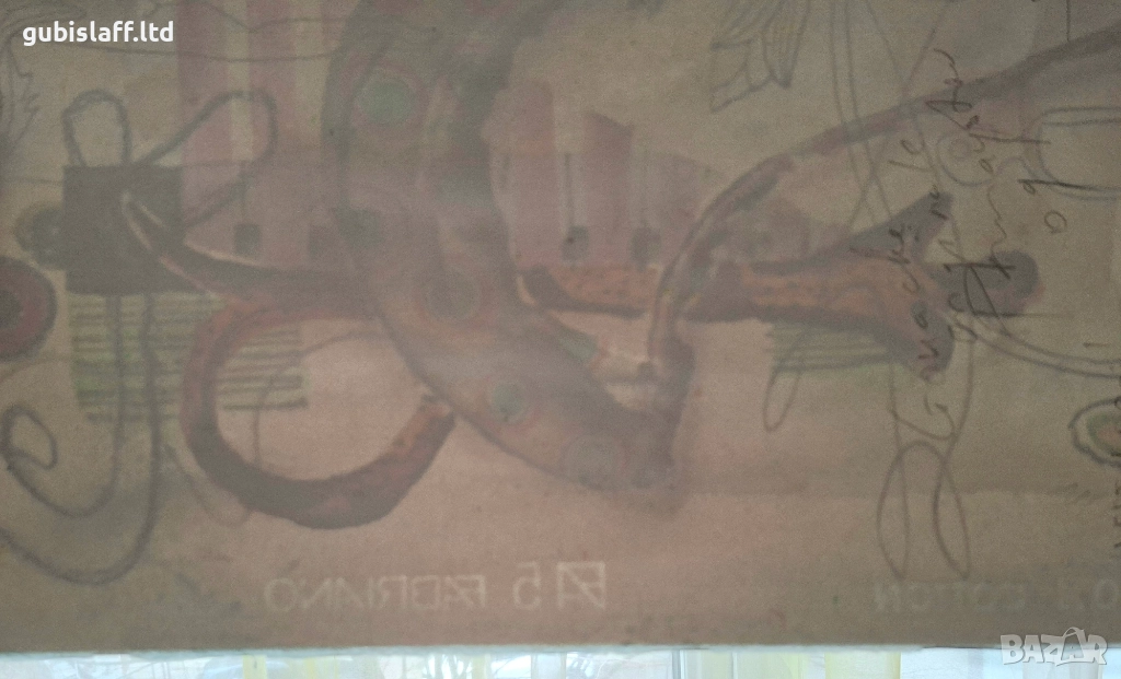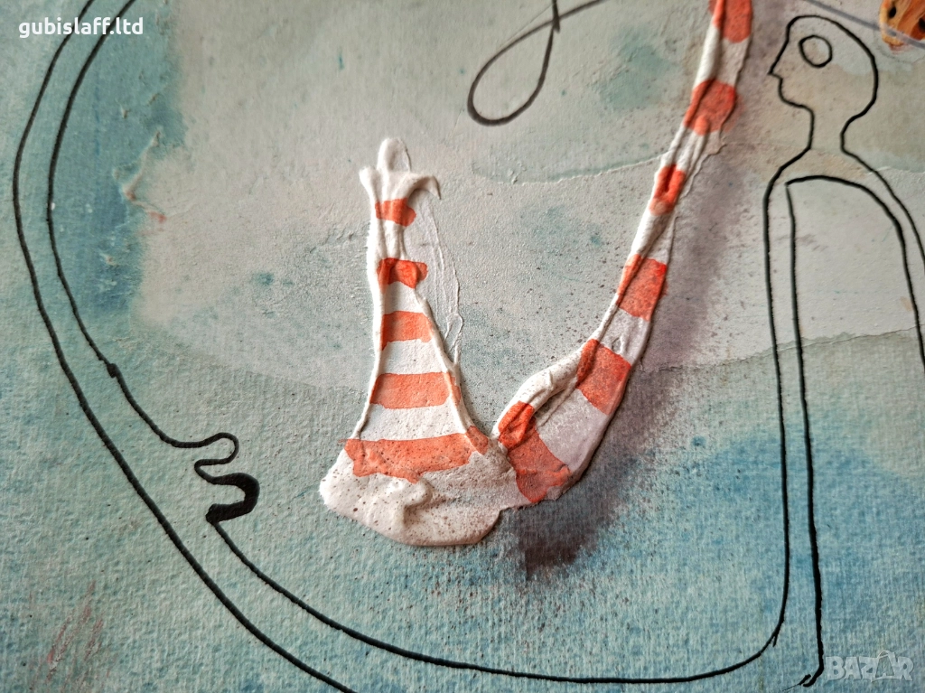 Смесена техника - гваш, акварел, пастел, туш, картон, размер 50х35 см., воден знак на картона.