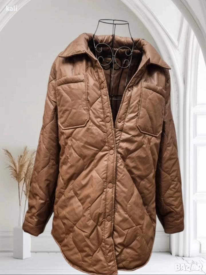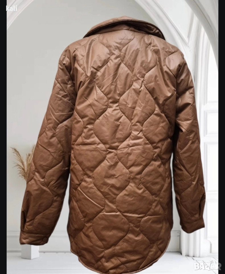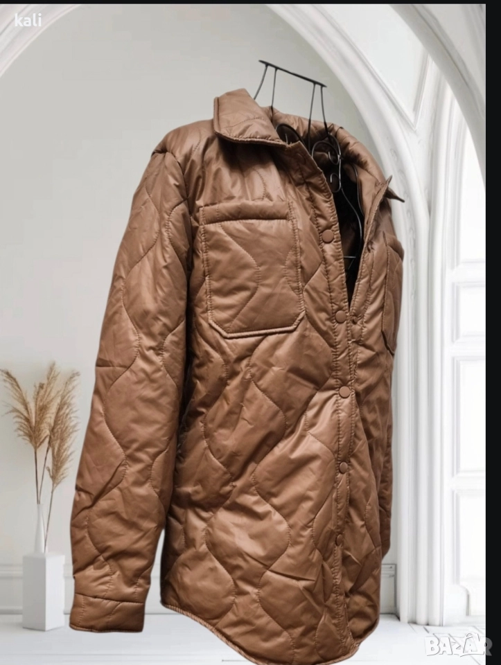 Капитонирано яке тип "риза" в цвят шоколад/бронз Описание: Продавам супер стилно дамско яке, което е перфектно за преходния сезон! Моделът е тип "риза" – една от най-актуалните тенденции в момента. Стои страхотно както с дънки и кецове, така и с по-елегантни боти. Якето е леко, но топли, благодарение на капитонираната подплата. Има свободна и удобна кройка, красива якичка и два големи джоба на гърдите, които са супер удобен акцент. Детайли: Цвят: Наситено кафяво с лек, ефектен блясък (бронз/мока). Дизайн: Вълнообразна капитонация, заоблен подгъв и закопчаване с копчета. Изпращам с опция преглед и тест, за да видите цвета на живо – още по-хубав е!