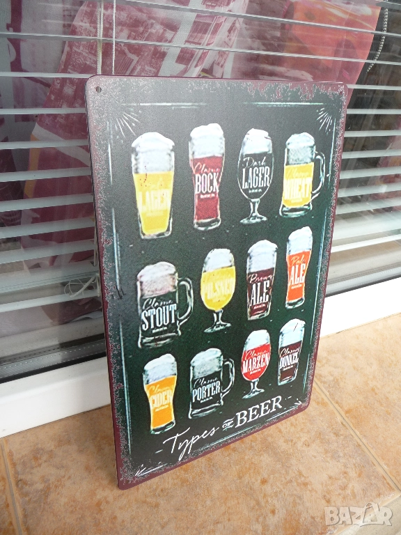 Метална ламаринена табела - Types of Beer.