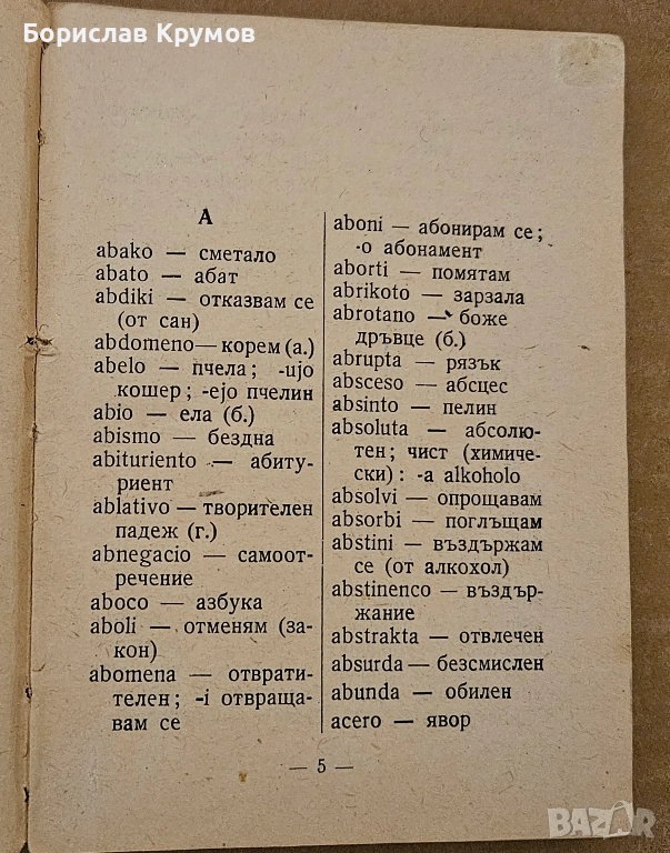 Малък есперанто-български речник, 1956 г., снимка 1 - Чуждоезиково обучение, речници - 52729052 Малък есперанто-български речник, 1956 г., снимка 2 - Чуждоезиково обучение, речници - 52729052 Малък есперанто-български речник, 1956 г., снимка 3 - Чуждоезиково обучение, речници - 52729052 1/3