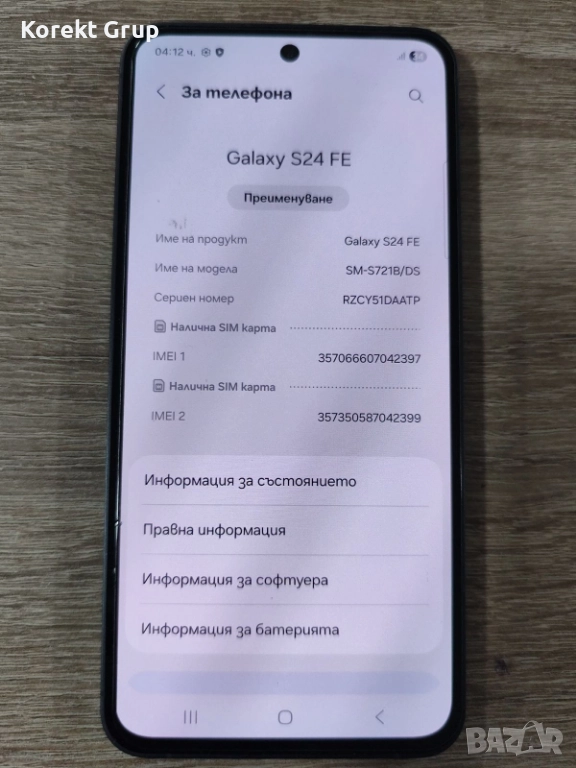 Samsung Galaxy S24FE 128гб/8гб в перфектно състояние неразличим от нов без никакви забележки,изпращам с еконт с опция преглед и тест и 10% отстъпка от цената за доставка....