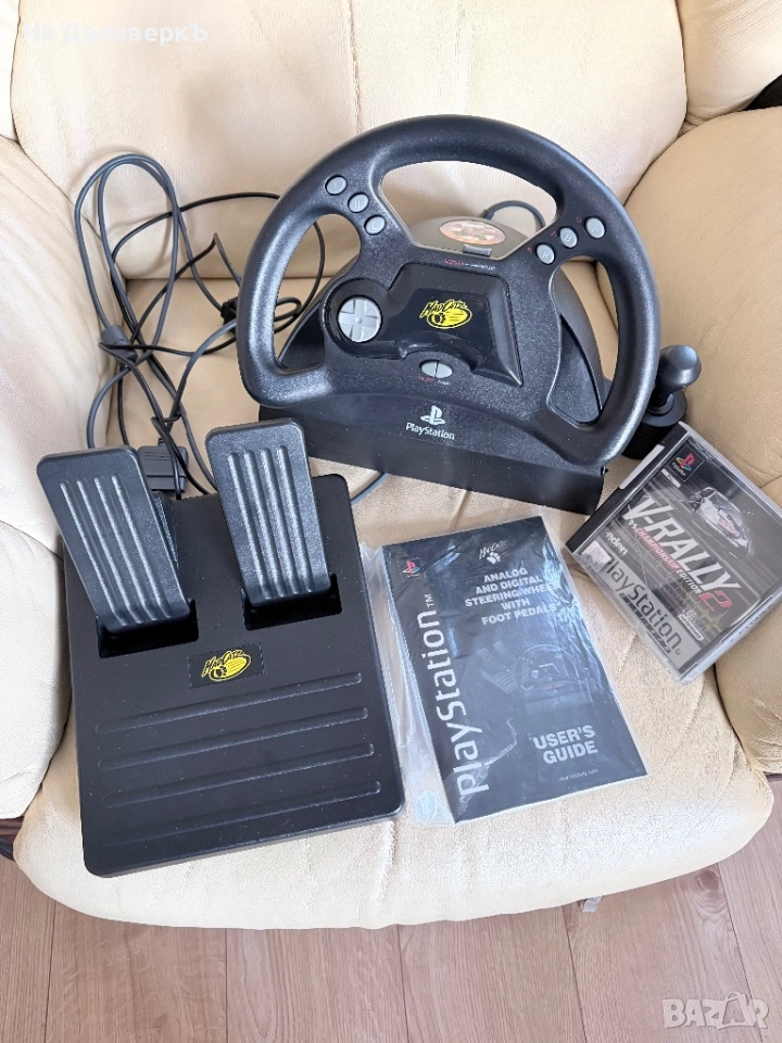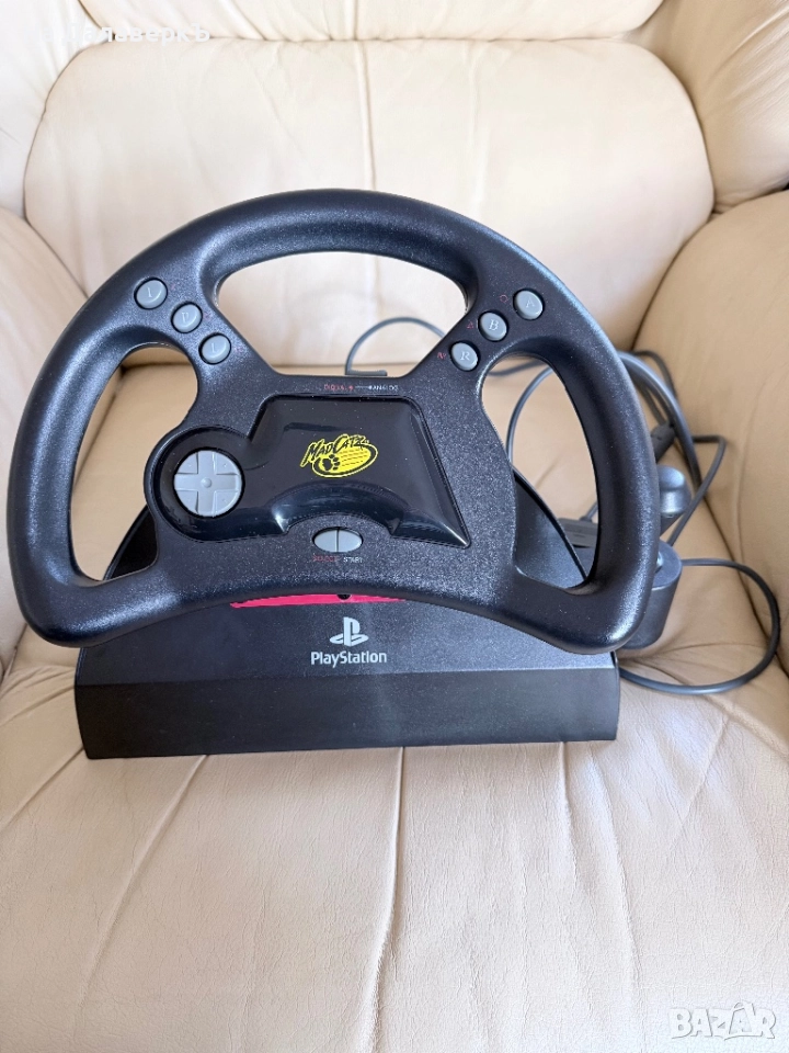 PlayStation 1 Комплект: Mad Catz Волан, Педали, 2 Джойстика, Игри, Кутия