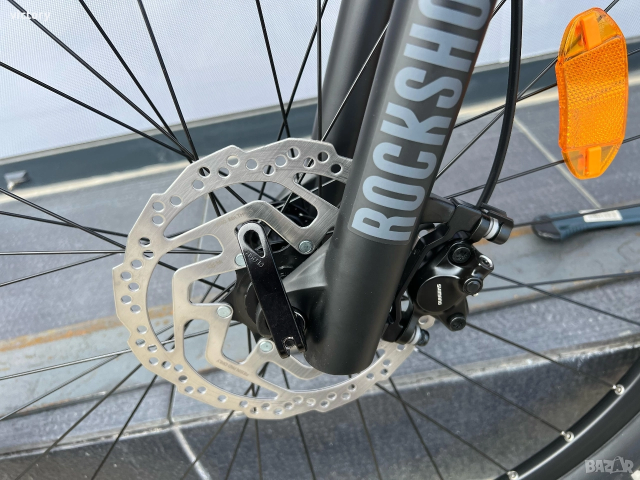 * Вилка: Рокшок 29”, 150 мм ход, въздушна, заключване (Lockout), регулируем отскок (Rebound), Performance E-Optimized