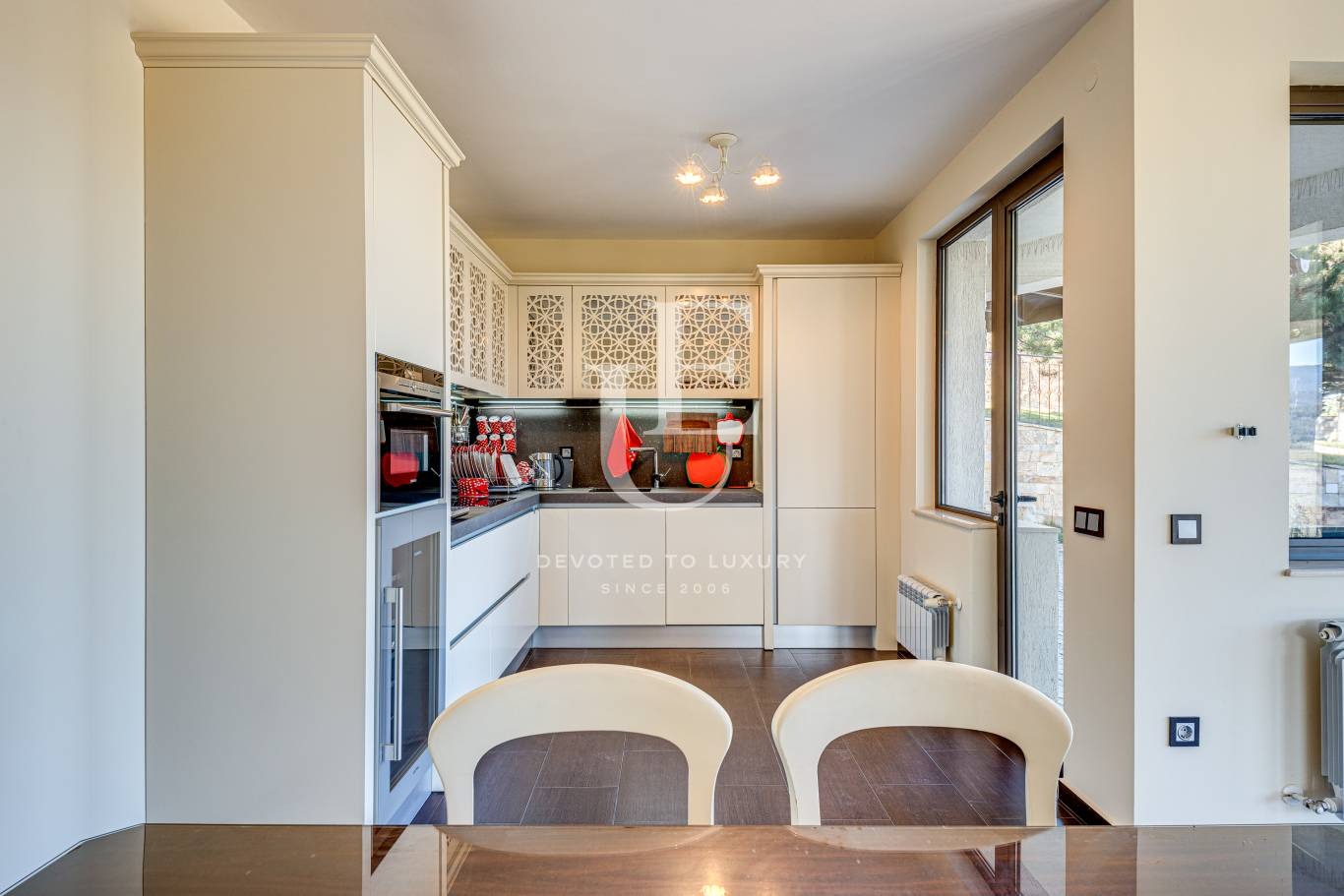 Първо ниво: дневна, кухня, трапезария, толетна за гости