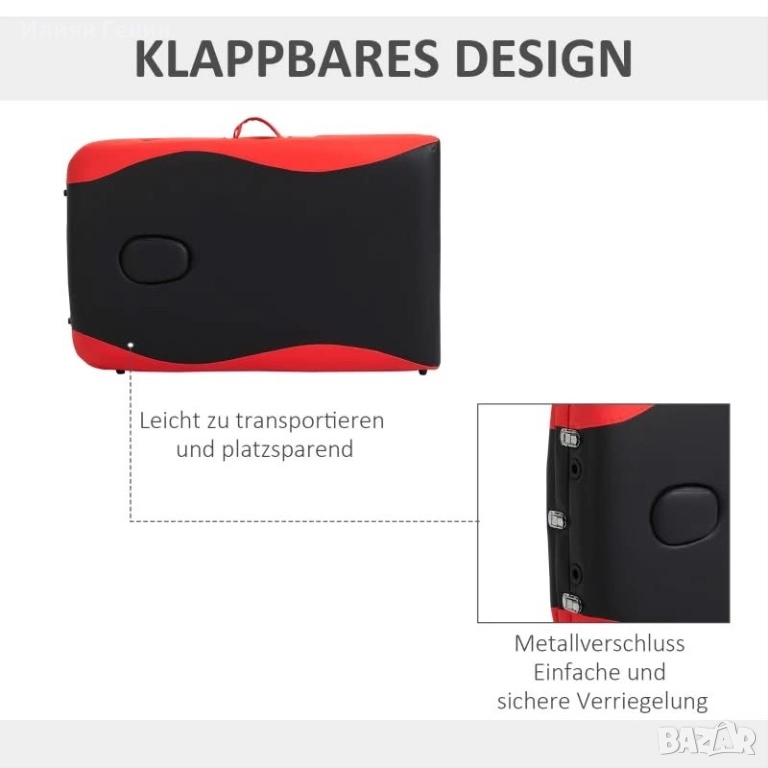 Мобилна масажна маса HOMCOM, 3 зони, сгъваема с облегалка за глава, подлакътници, чанта за носене, с регулируема височина, товароносимост до 225кг - 300.00лв.