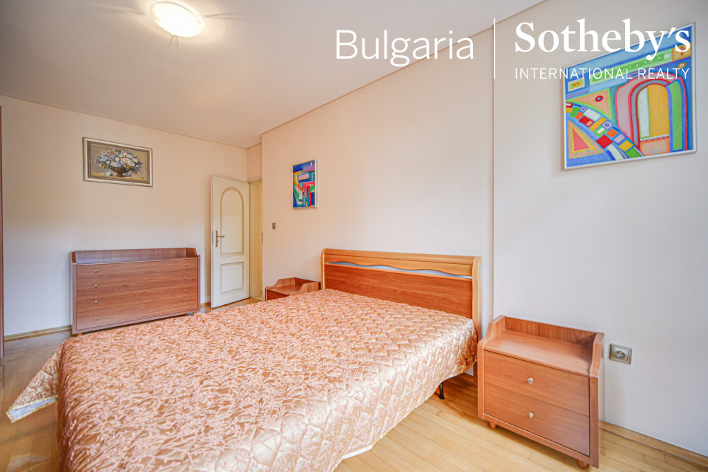 BULGARIA SOTHEBY’S INTERNATIONAL REALTY има удоволствието да представи на Вашето внимание елегантен и напълно обзаведен четиристаен апартамент, разположен в престижна сграда с денонощна охрана и представителни общи части, в един от най-желаните райони на София — Лозенец.