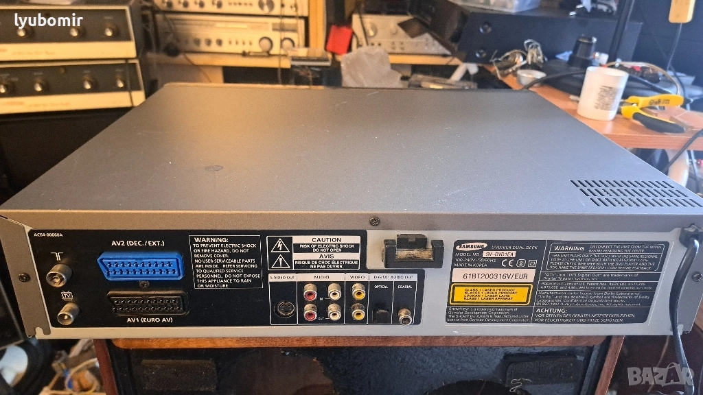 Комбинирана система с хай- фи аудио, шестоглава машина. Работи добре. Записа от CD на VHS e страхотен. Повдига динамиката и прави звука, наситен по човешки топъл.Дистанционното е налично и без следи от износване.