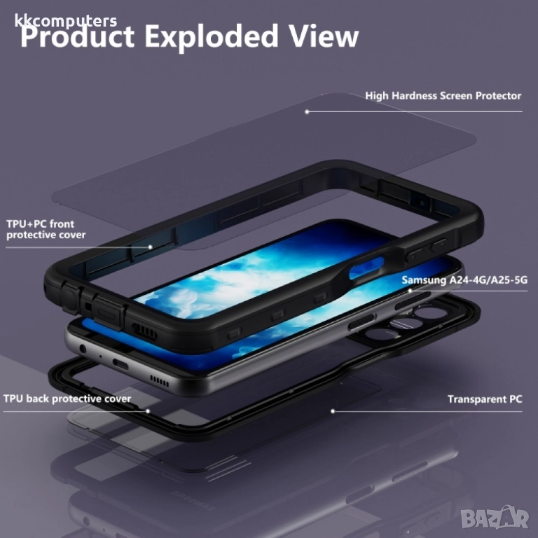 Приляга идеално към телефона. Защитава гърба, дисплея и в същото време има приятен и класически дизайн - тип книга. Не увеличава размера на Вашия Samsung Galaxy A24 4G / A25 5G съществено.