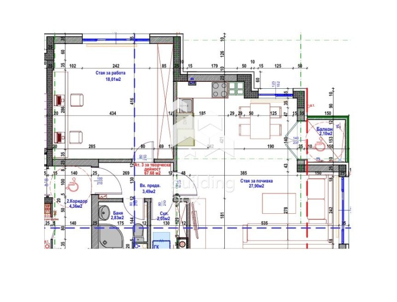 Билдинг Бокс предлага прекрасна новострояща се жилищна сграда в сърцето на град Банкя. Имотът е със статут Ателие и се намира на етаж 3-ти от общо 4, като е изключително подходящ за живеене, поради просторните пространства в имота, както и за инвестиционен имот.