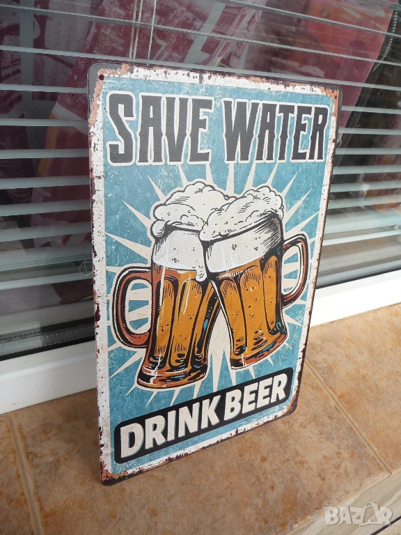 Метална ламаринена табела - Save water, drink beer.