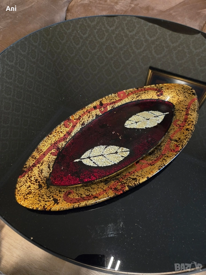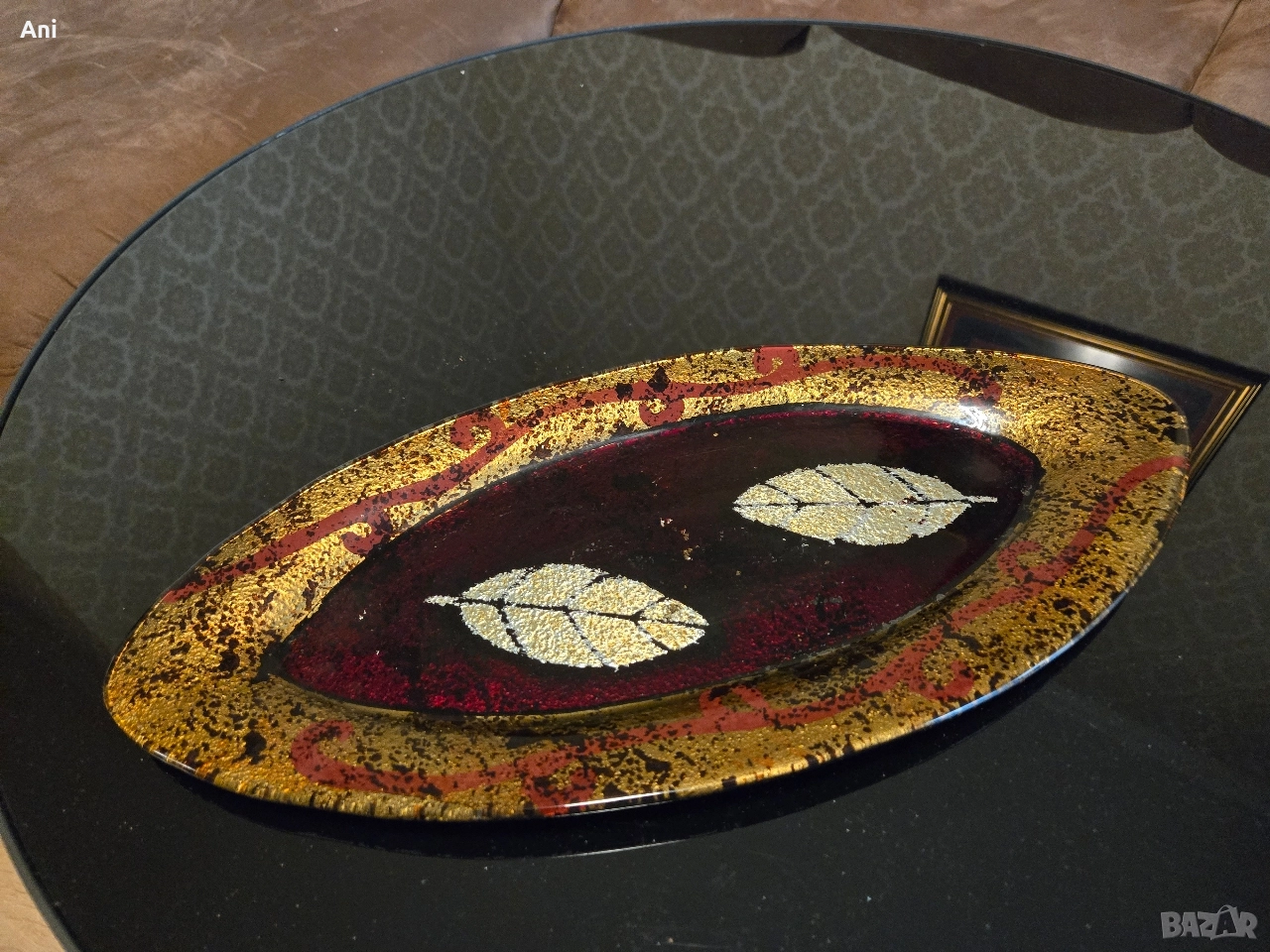 Изключително атрактивна, голяма и красива чиния/поднос - подходяща за сервиране на различни плодове мезета или продукти на маса или за поставяне на вещи например на портманто или просто за декорация в дом, офис , заведение или за където сметнете за добре. Изключително атрактивно и красиво бижу за всеки дом.