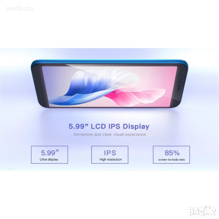 Разполага с 6-инчов IPS дисплей с формат 18:9, който осигурява ясна картина и удобна работа с една ръка.