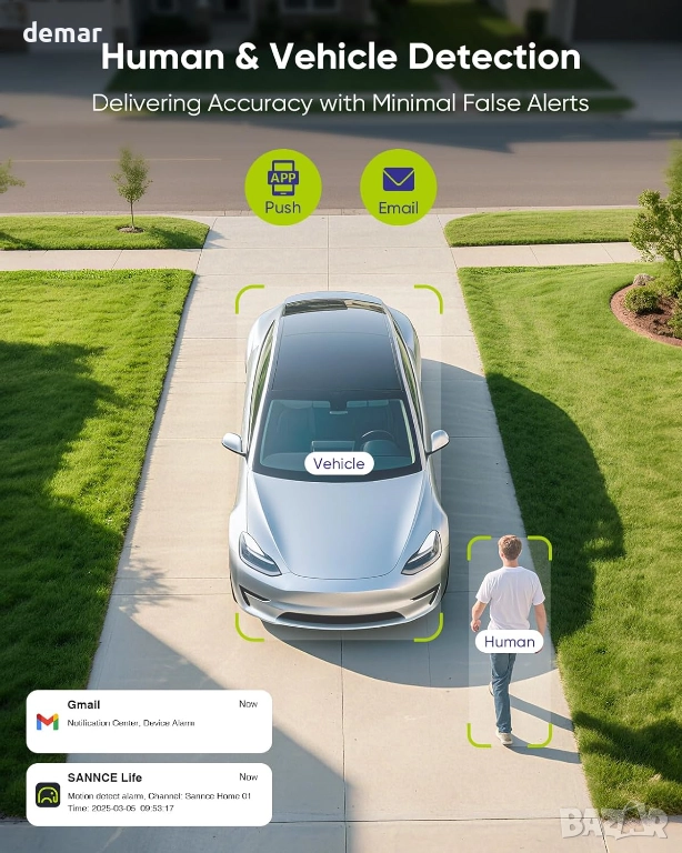 Тази PoE охранителна камера осигурява пълноцветно дневно и нощно видео с усъвършенствания си обектив за слаба светлина и двойните топли прожектори, осигурявайки ясни 2K кадри в широк спектър от външни среди. Тя поддържа интелигентно разпознаване на хора и превозни средства с регулируеми зони за предупреждение, а подобренията с изкуствен интелект подобряват детайлите, намаляват шума и оптимизират осветлението в трудни условия. Вграденият 360° микрофон записва аудио заедно с видео, а инсталацията е опростена чрез PoE захранване с един кабел и напълно въртящ се монтаж. Нейният водоустойчив дизайн IP67 осигурява надеждна дългосрочна работа при топлина, студ, дъжд, прах и силен вятър.