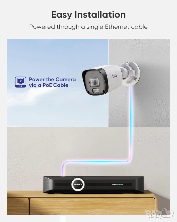 SANNCE 3MP PoE охранителна камера за външна употреба, пълноцветно нощно виждане