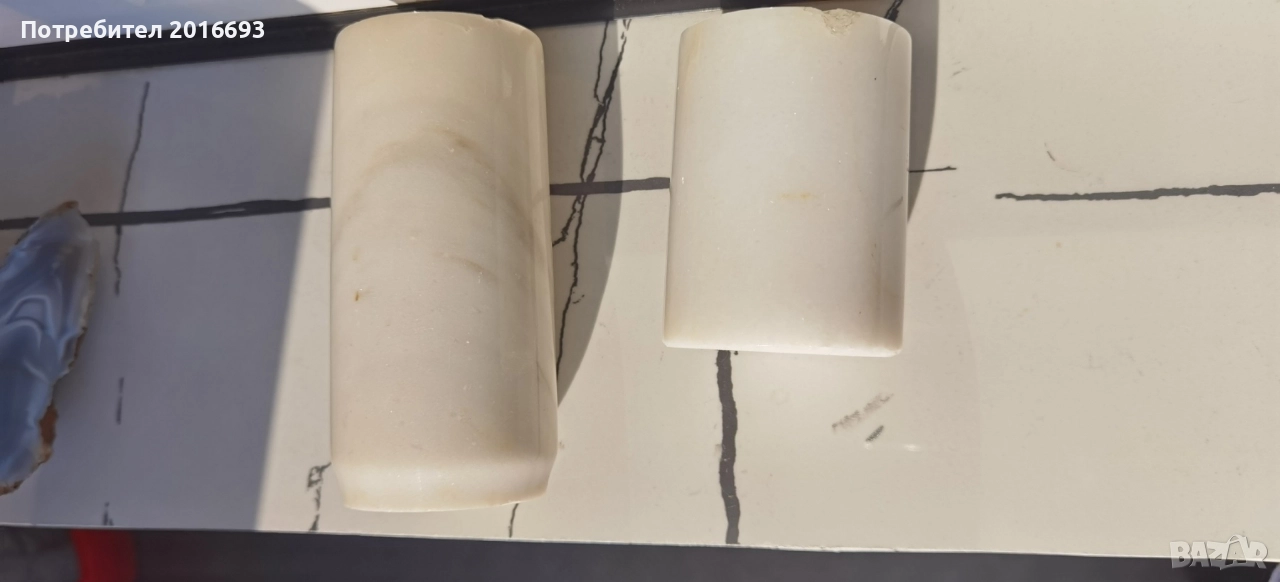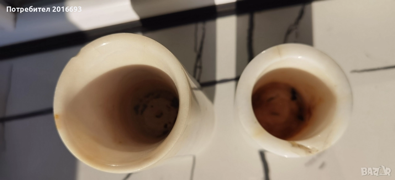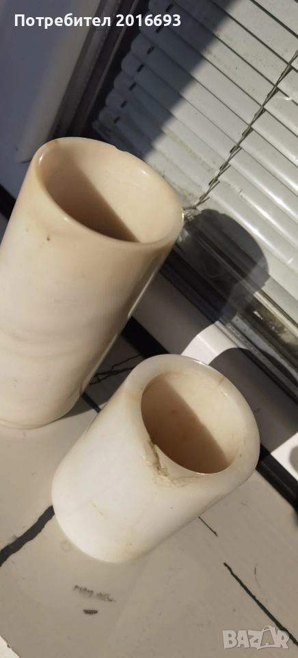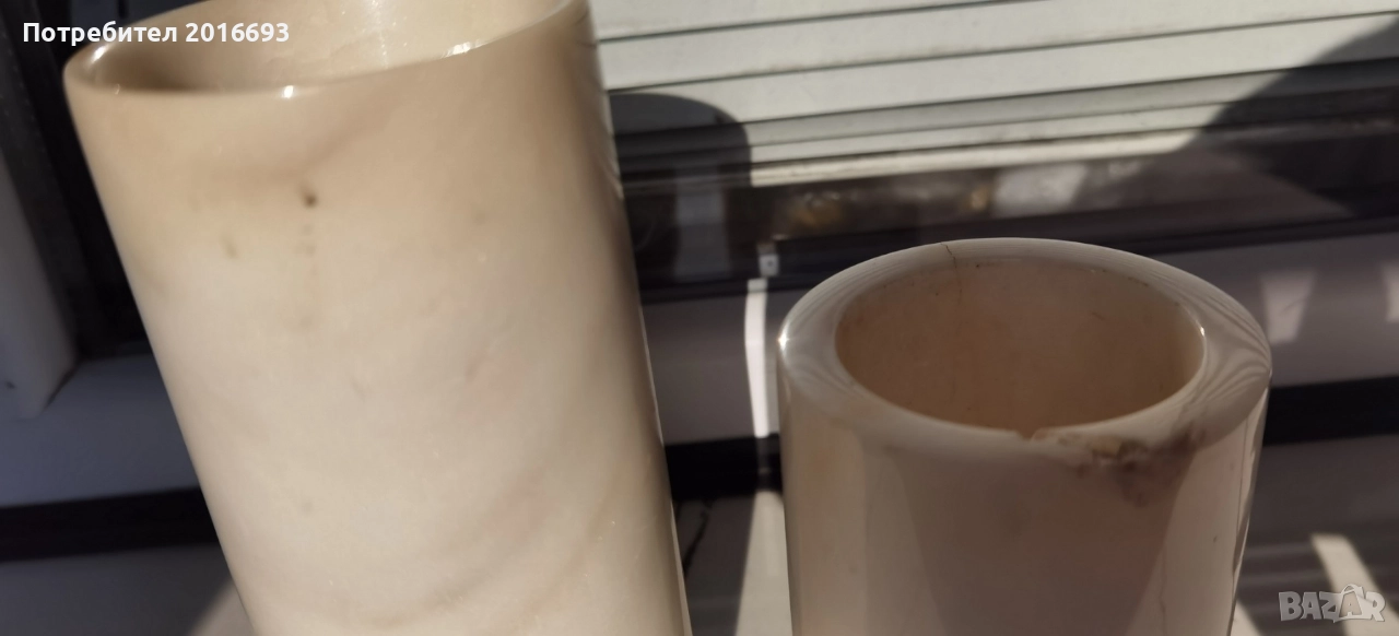 Голямата вазичка е 14см. малката е8см и има леко спукване в горната част .Подпиралка за книга от уникален ахат и мрамор.Цена за всичко 25лв.