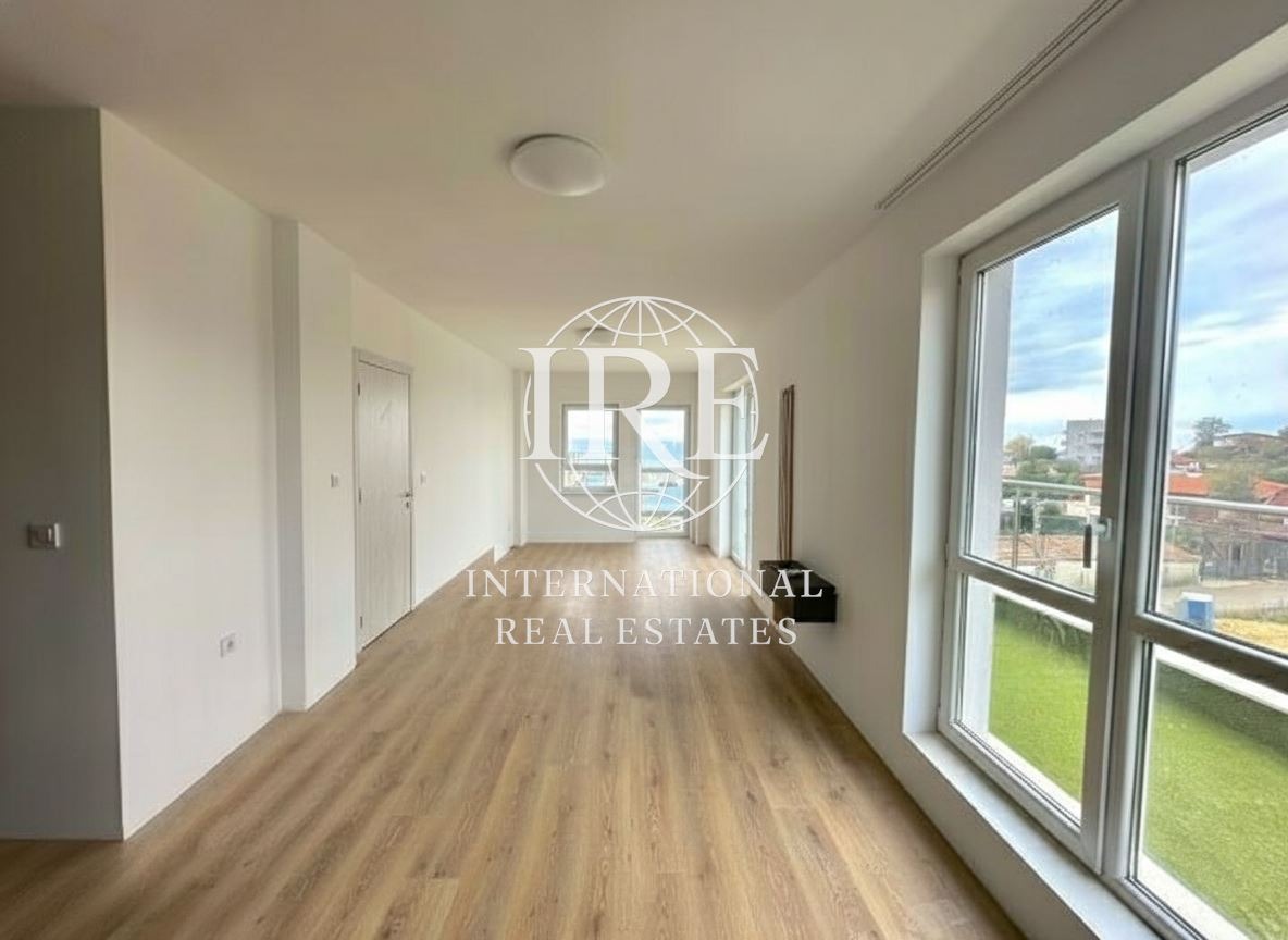 Разпределение: Просторен дневен тракт с кухненска част (35 кв.м.), голяма спалня (17.5 кв.м.), килер/мокро помещение, баня с тоалетна (4.40 кв.м.), коридор и две панорамни тераси с гледка към морето. Имотът предлага функционална възможност за преустройство в тристаен апартамент.