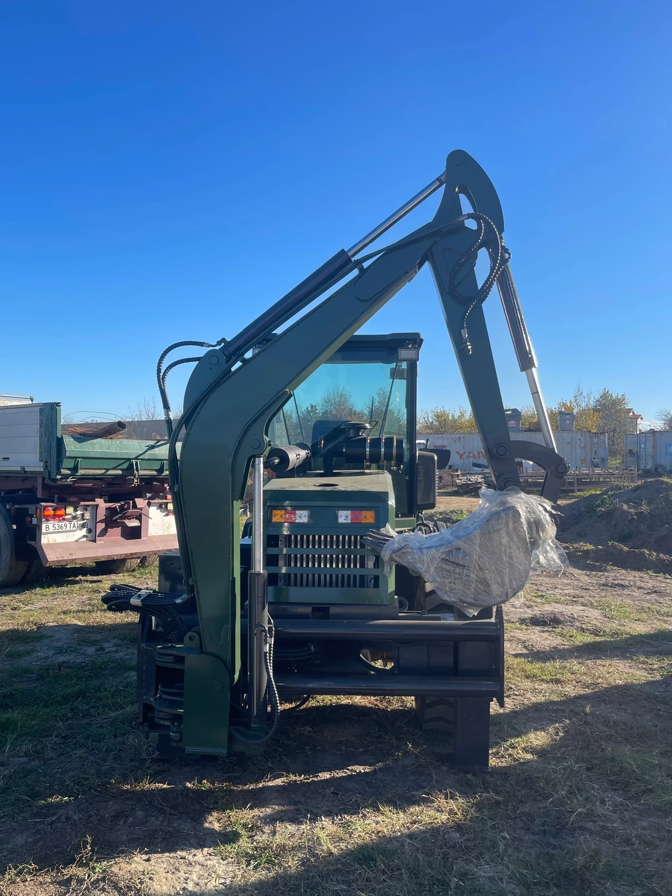 багер M? ller B5. 4 Комбиниран багер 5. 4т Отваряема предна кофа Палетни вилици Климатик Нагревател антифриз Година на производство - 2024г Задвижване - Колесно 4х4 Бързи/Бавни Двигател - Дизел 4 цилиндъра Мощност - 102кс Дължина - 6. 25м Широчина - 2. 2м Височина - 2. 65м Макс. Скорост - 25км/ч Дълбочина на копаене - 4м Въртене на стрела - 180 градуса Предна кофа товароносимост - 2500кг Задна кофа товароносимост - 1500кг Широчина предна кофа - 2. 2м Макс. Повдигане предна кофа - 4. 5м Изсипване предна кофа долен край - 3. 9м Гаранция 12месеца Машините се намират в с. Звездица, гр. Варна и могат да бъдат видяни и тествани всеки ден от седмицата. Налични багери, комбинирани багери, челни товарачи и др. Доставка в цяла България