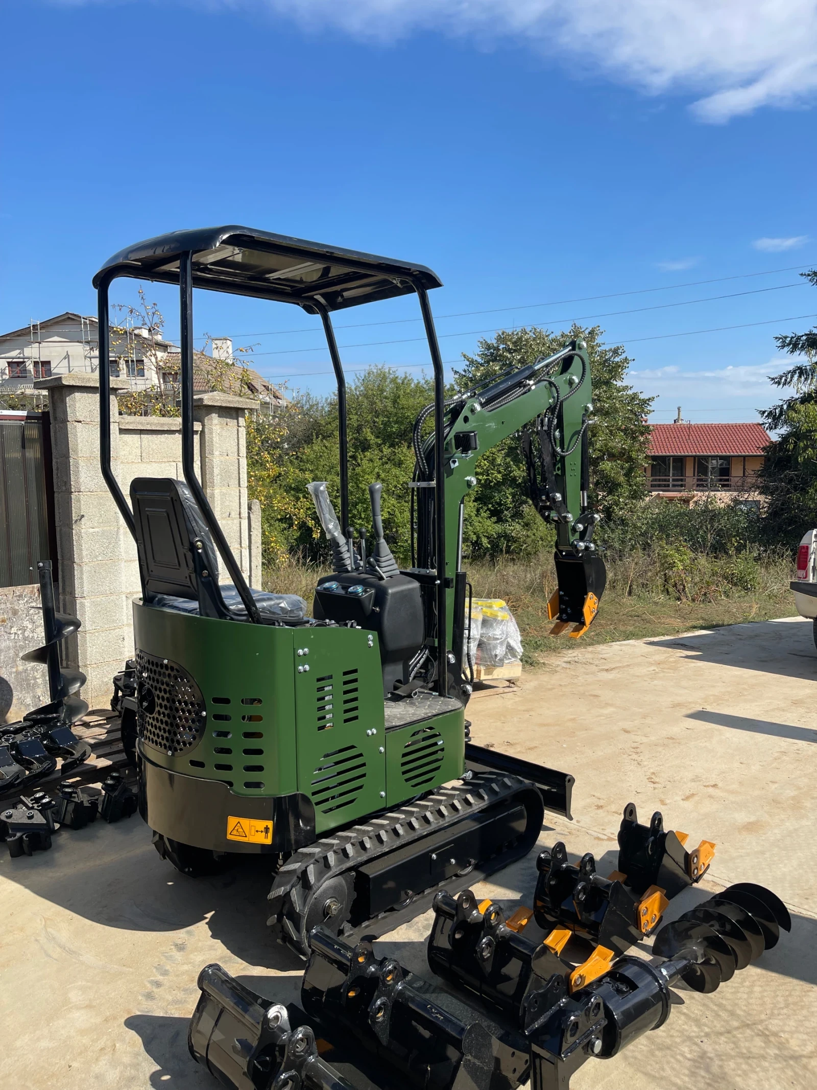 Мини Багер Muller E1. 0 Оперативно тегло - 1000 кг Двигател - Koop 192F Дизел Обем на двигателя - 500 куб. см Мощност - 12 к. с. Широчина - 95 см Височина - 150 см (когато се смъкне тавана) Максимална дълбочина на копане - 185 см Резервоар - 5. 5 литра Разход на гориво - 300-450 гр/час Чупеща стрела - срещу допълнително заплащане Машините се намират в с. Звездица, гр. Варна. Може да ги видите и тествате на място. Огромен избор от аксесоари: кофи, хидравлични чукове, свредели, косачки, мулчери, фрези и др. Поддържаме всяка една част налична на склад в нашата база, разполагаме и с мобилен сервиз за гаранционно и извънгаранционно обслужване. Налични Багери, Челни Товарачи, Комбинирани Багери, Трактори и други машини, които можете да видите и тествате в нашата база. Говорими езици/ We speak: български, english, русский, rom? n? , t? rk? e, srpski, espa? ol Свържете се с нас за повече информация или оглед!