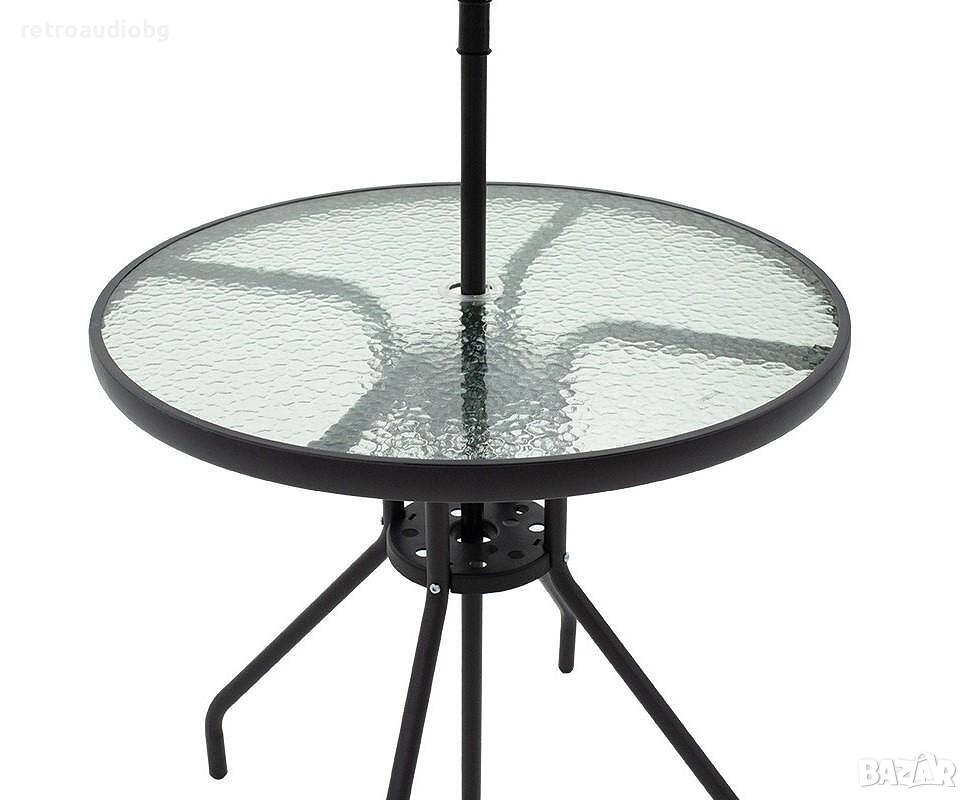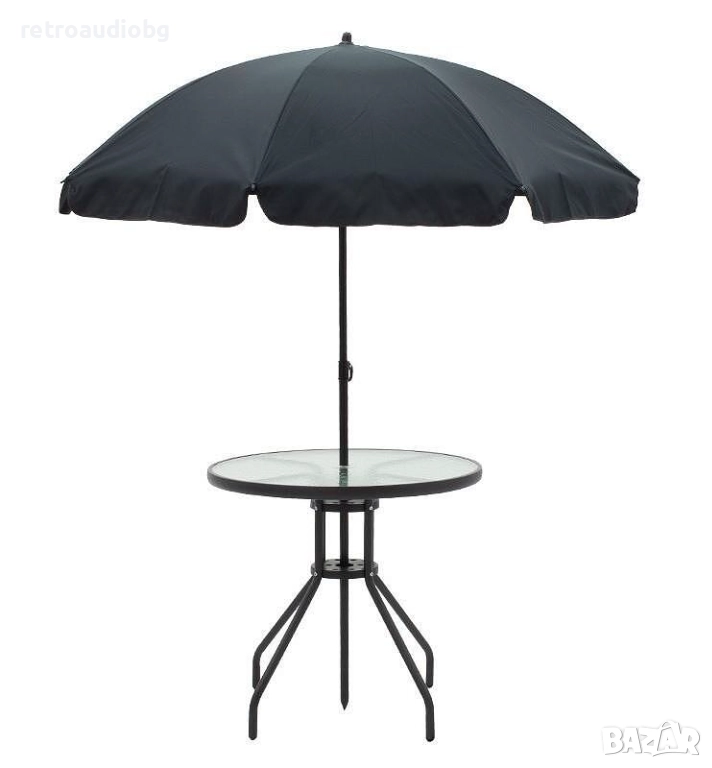 Градински комплект КАМЕЛИЯ маса Ф75, 4 сгъваеми стола и чадър