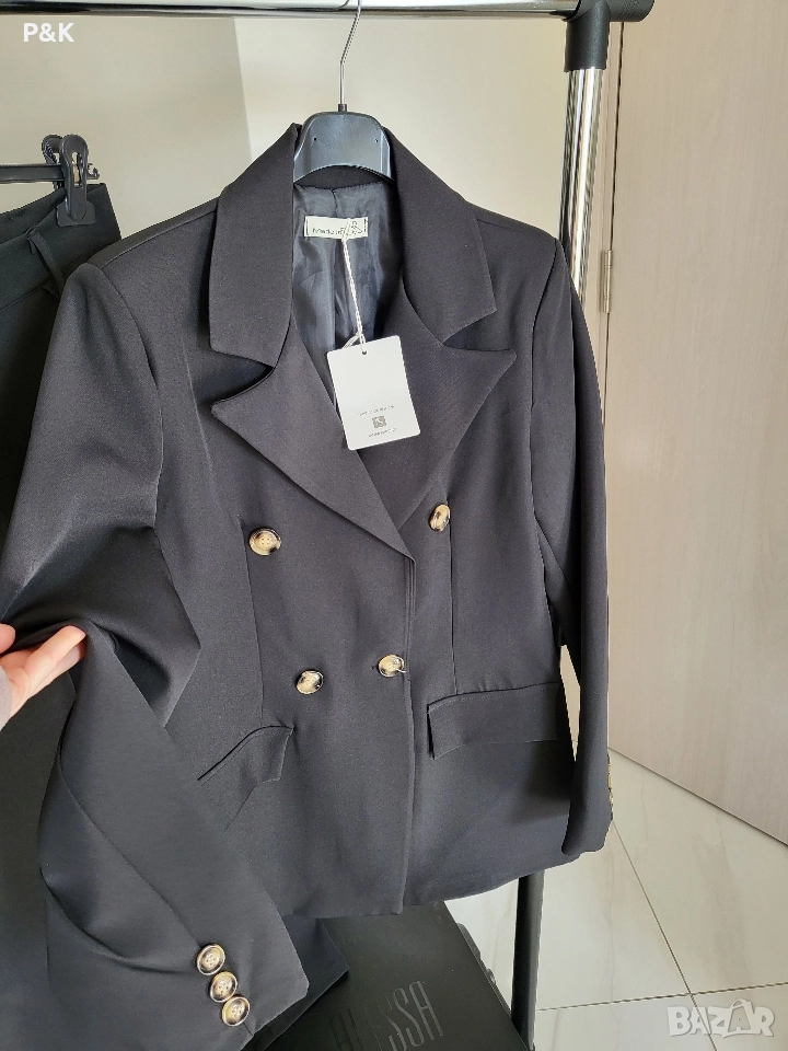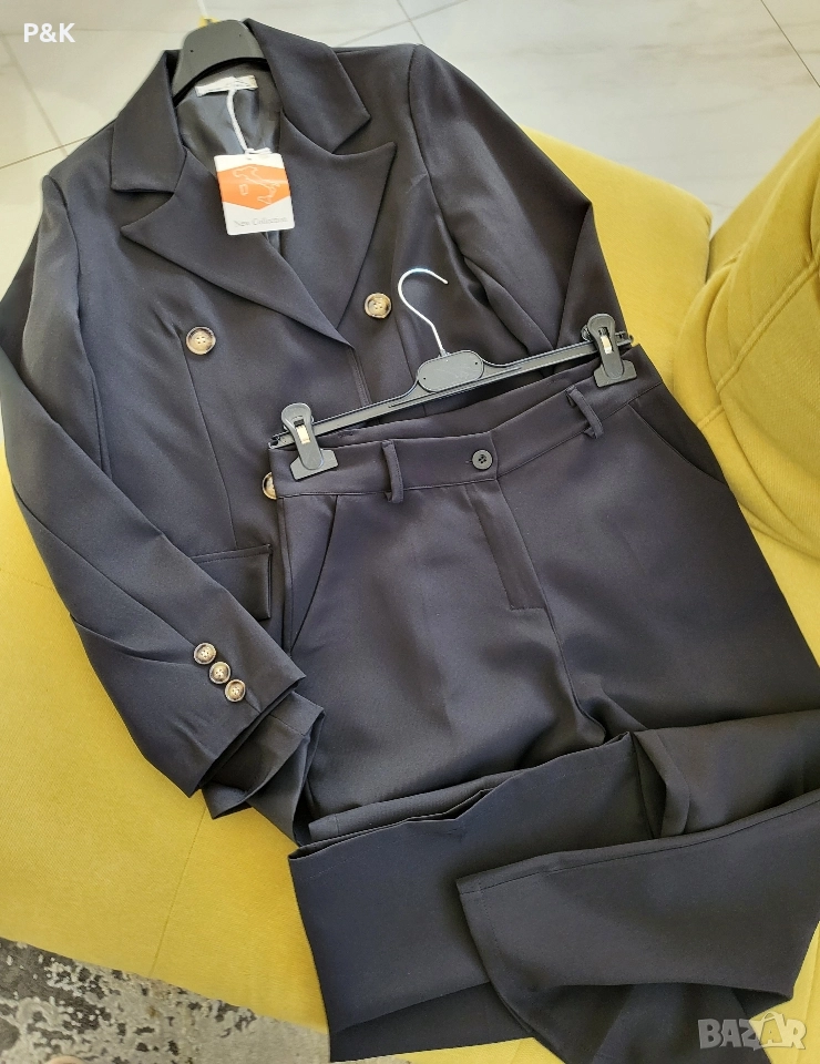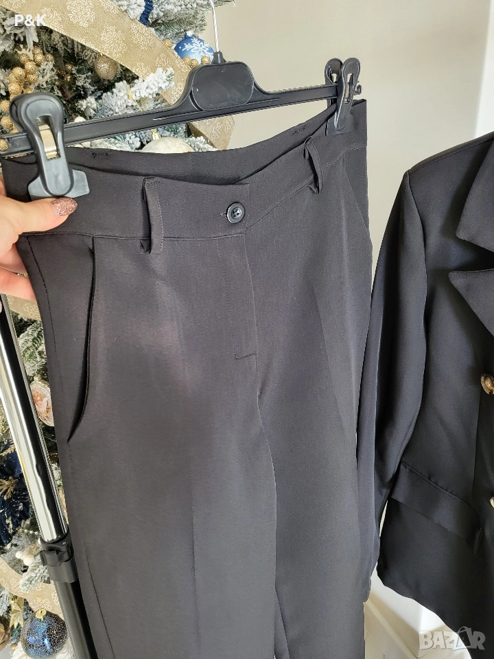 Костюм от две части - панталон с висока талия и сако - свободна кройка.