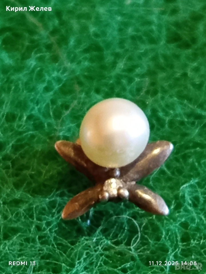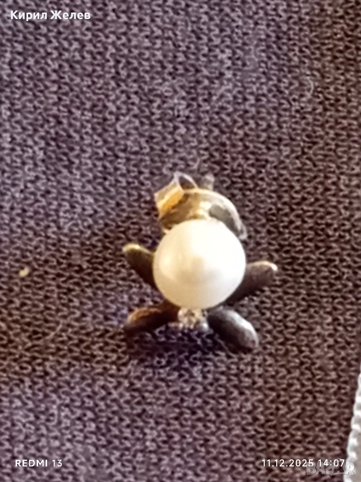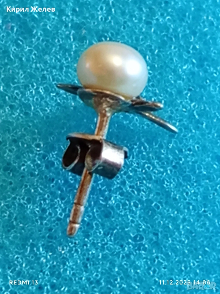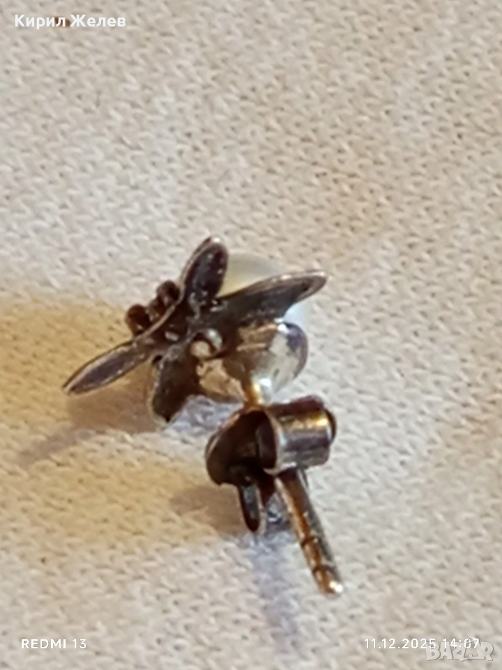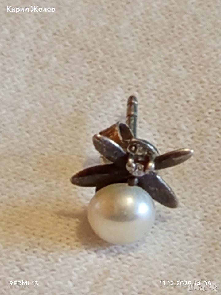 Винтидж сребърна обеца с флорален мотив и инкрустирана перла 50980