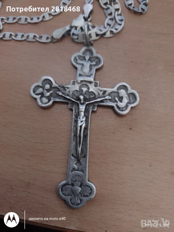 сребарен синджир с кръс → Обява 52735612